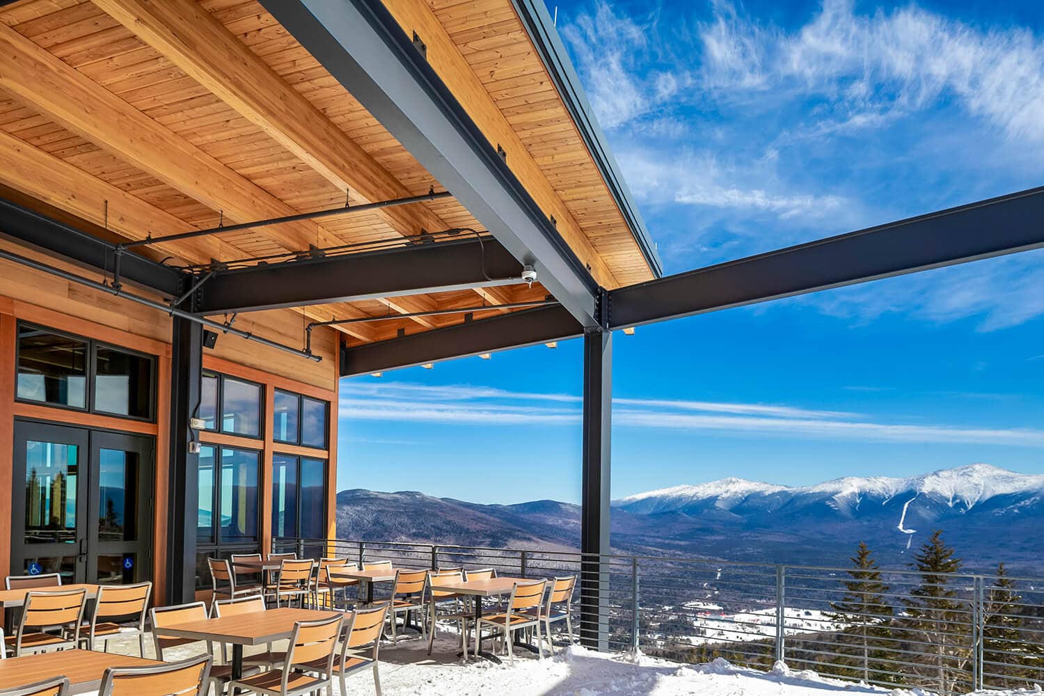 Bull Stockwell Allen designed the award winning four-season on-mountain lodge for the Omni Bretton Woods ski area and Mt. Washington Resort. The 16,500 square foot lodge serves as a special event venue and destination dining experience for the Mt. Washington Hotel guest, Bretton Woods’ guests and Presidential Range destination visitors. Located near the top of the mountain, and accessed via the resort’s gondola, the lodge includes a coffee bar and fine-dining bistro on the main floor with the top floor dedicated to hosting special events and the winter season skiers looking for on-mountain dining and aprés ski. The lodge’s materials of timber, steel, stone and glass complement the region’s rugged natural beauty. The mountain’s topography and skier traffic patterns informed the design and massing of the building into a ‘knife blade’ form that sits comfortably in the mountain.